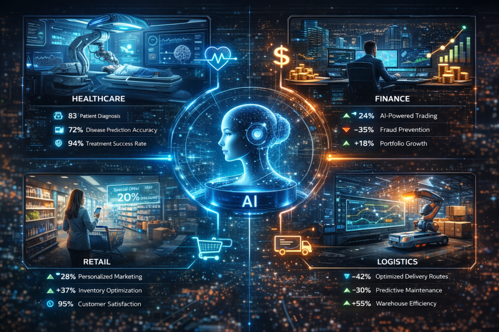 Healthcare, finance, retail, logistics, manufacturing, and technology are seeing major transformations.